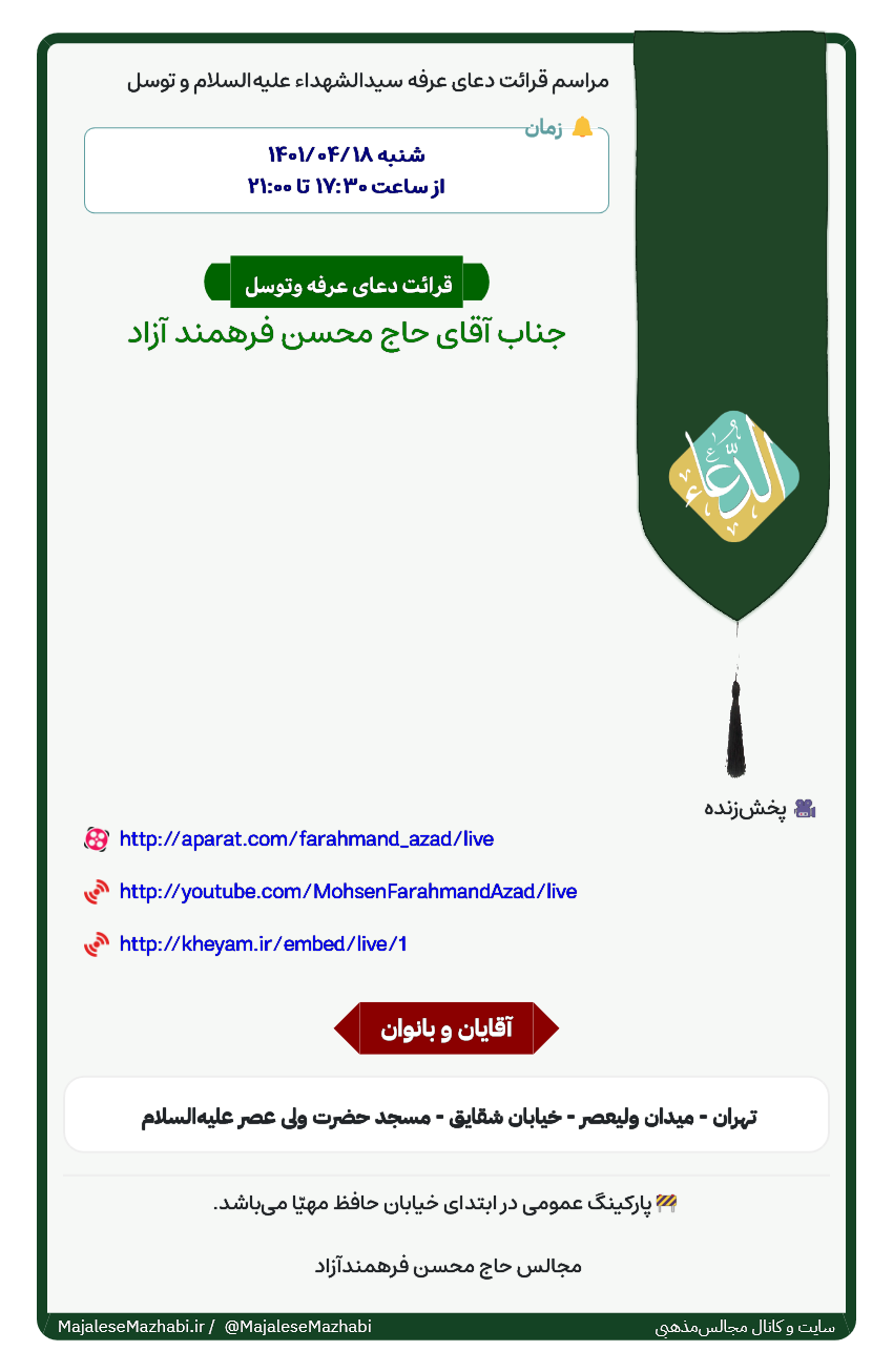 ⚜️ برنامه دعای ندبه و نماز روز عید قربان ⚜️ ⚜️ هیئت علم القرآن جعفری ⚜️