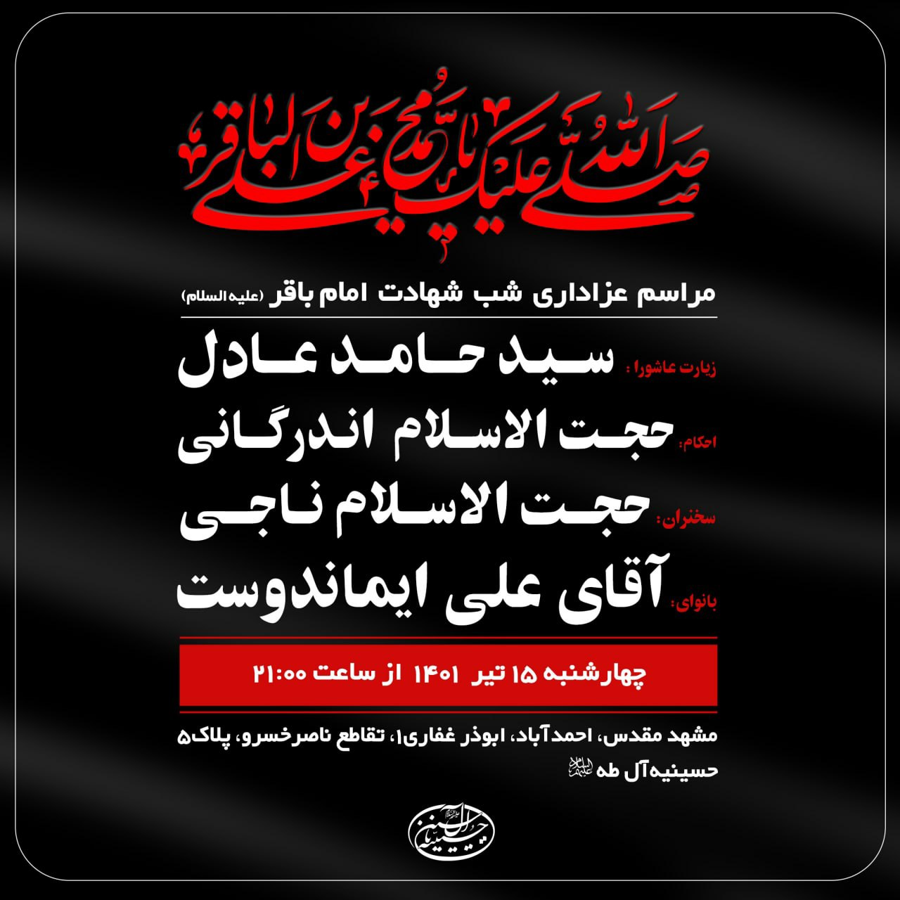 مراسم عزاداری شب شهادت امام باقر (علیهالسلام) |