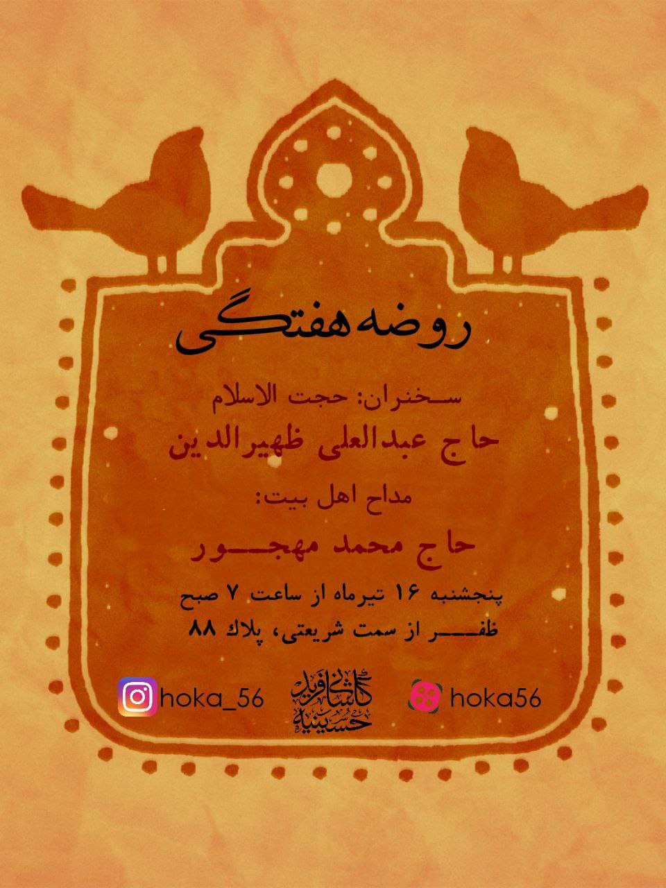 روضه هفتگی حسینیه کاشانی فرید |