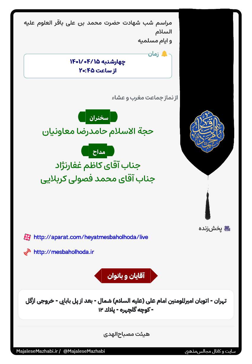 مراسم شب شهادت حضرت محمد بن على باقر العلوم علیه السلام و ایام مسلمیه |