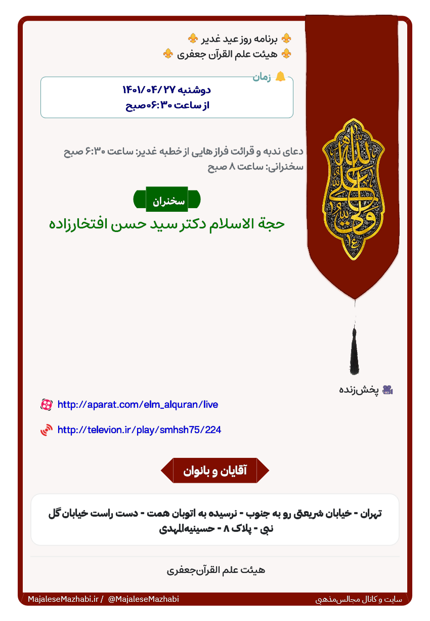 ⚜️ برنامه روز عید غدیر ⚜️ ⚜️ هیئت علم القرآن جعفری ⚜️ |