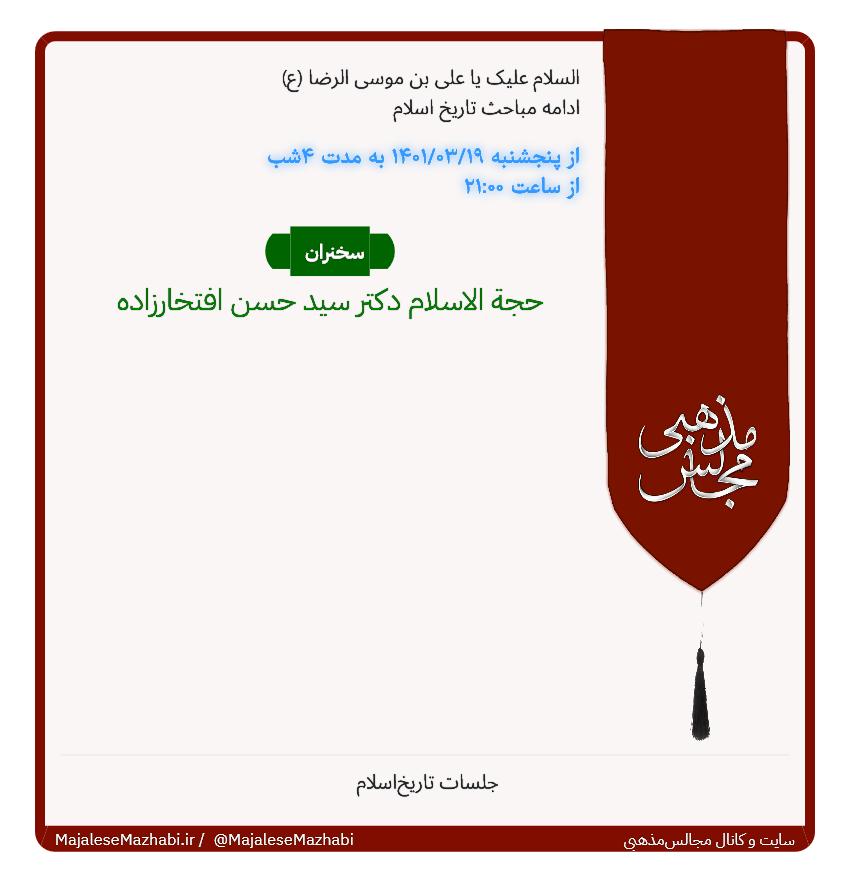 السلام علیک یا علی بن موسی الرضا (ع) ادامه مباحث تاریخ اسلام