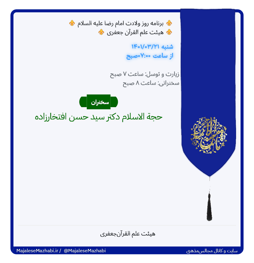 ⚜️ برنامه روز ولادت امام رضا علیه السلام ⚜️ ⚜️ هیئت علم القرآن جعفری ⚜️