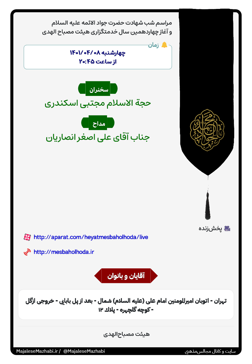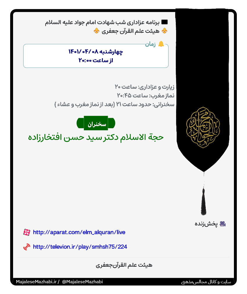 🏴 برنامه عزاداری شب شهادت امام جواد علیه السلام ⚜️ هیئت علم القرآن جعفری ⚜️ |